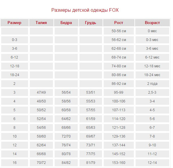 Таблица детских размеров одежды по возрасту: Россия, США, Китай, Европа