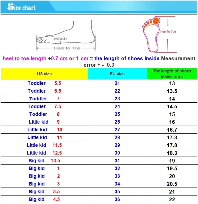В большинстве случаев стопы младенцев растут довольно быстро. Таким образом, крайне важно сверяться с таблицей размеров детской обуви и измерять их ноги всякий раз, когда вы собираетесь покупать им новую обувь.