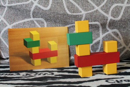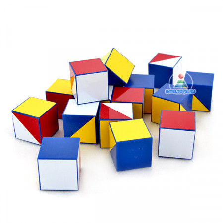 Чем старше ребенок, тем больше материала ему можно предложить, вплоть до полного комплекта смешанных кусочков, из которых нужно собрать 23 кубика.