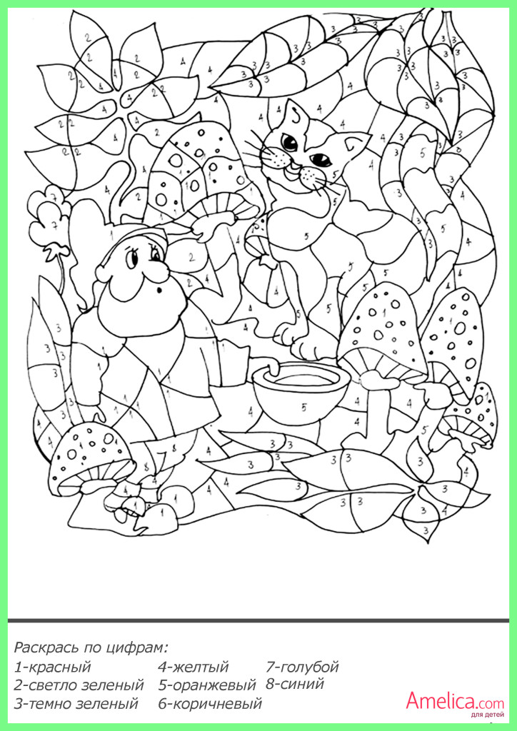 Детские игрыВ этом разделе можно раскраски по цифрам распечатать для детей от 4, 5, 6, 7 лет. Это усложненный вариант раскрасок, содержащих большее количество элементов картинки и цветов.