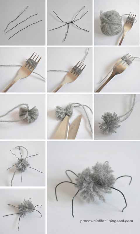 Все, что вам понадобится, – один шарик для тела и проволока или веревки для лапок. Некоторые умелицы делают интересных красивых пауков из бисера и бусин. Если позволяют размеры декорации, можно пробовать сшить мягкую игрушку. Также паутину можно целиком или местами покрыть сухими блестками или специальным спреем. Украсить «грязное» украшение, сделанное из окрашенных нитей или ткани, можно, добавив цвета в определенные места. Подойдет и мелкий мусор – например, веточки или засохшие листья. Вспомните, как выглядит настоящая паутина на чердаке дачи. И попробуйте добиться того же эффекта.
