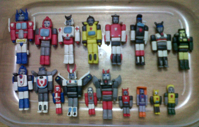 Вы можете выбрать любой объект для копирования, ведь таких игрушек сегодня представлено очень много. Родоначальниками подобного веяния стали мультипликационные персонажи, а далее свою фантазию начали реализовывать производители игрушек. Примем за прототип нашего робота модель, именуемую Марс, попытаемся ее скопировать. Это трансформер в голубых тонах, поэтому и цвета пластилина мы подобрали соответствующие.
