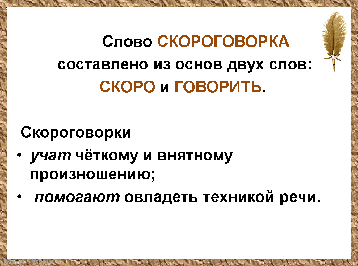 Ребенку должно очень понравиться, как это звучит. Это даст стимул для того, чтобы научиться произносить скороговорку так же, как взрослый.