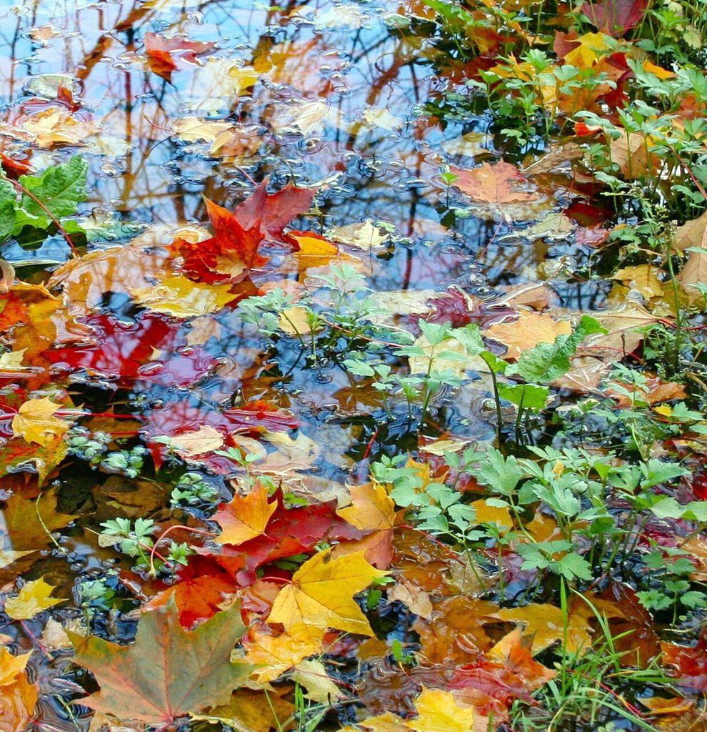 Мокрые осенние листья с каплями воды, упругие крепкие под струями дождя. Дождь, как благословение небес. Листья как ладошки счастья, подставленные холодной воде. Шум дождя, шум листвы, шум жизни. Которая всегда неизменна, и всегда изменяется.