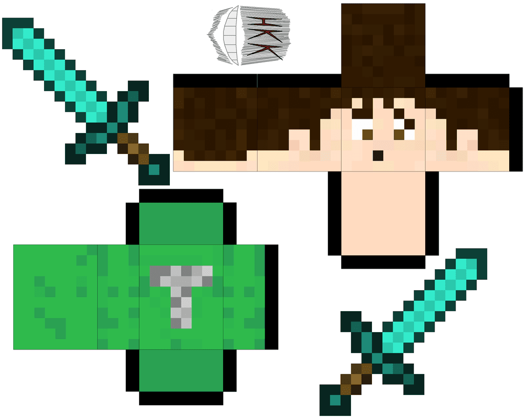 Конечно, они все еще играют в Майнкрафт, но теперь они используют бумагу, ножницы и клей для реального творчества.На фотографии выше изображен мой собственный игрок (или кожа, как ее называют в игре), а также алмазный меч и сундук, которые я сделал из бумаги и клея.