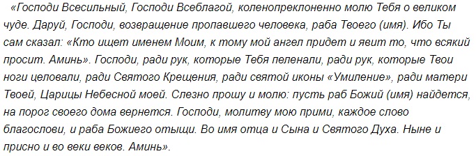 «В чистом поле утренняя заря встает, вечерняя заря заходит. Встану я лицом на восток, а спиной на запад. Посмотрю на восток – летят 3 голубя, несут 3 замка золотых. Запирали они замками воды: реки и ручейки, синие моря и родники, ливни с дождями. Запирали они и замыкали мочевой пузырь. Как суха земля без дождя, так пусть и кровать (имя) будет суха и ночью темной, и при луне. Слова мои крепки и сильны отныне и навсегда. Аминь.»