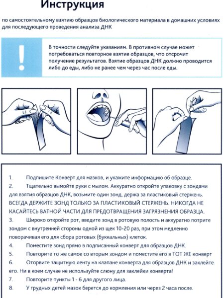 У матери будет взята венозная кровь, от отца требуется либо кровь, либо, если нет возможности его личного присутствия, ротовой мазок (инструкция по самостоятельному сбору), либо предоставить нестандартный материал (окурки, волосы, ногти и пр. – полный список можно посмотреть тут)