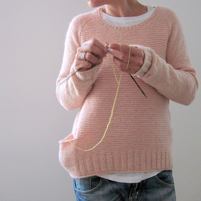 В этом методе круговые спицы используются для вязания «на плоскость», вперед и назад . Это особенно полезно при работе с большим количеством петель, например, при вязании одеяла.