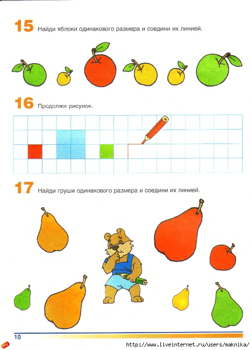 – Какие яблоки нарисованы на первой строчке? (большие)