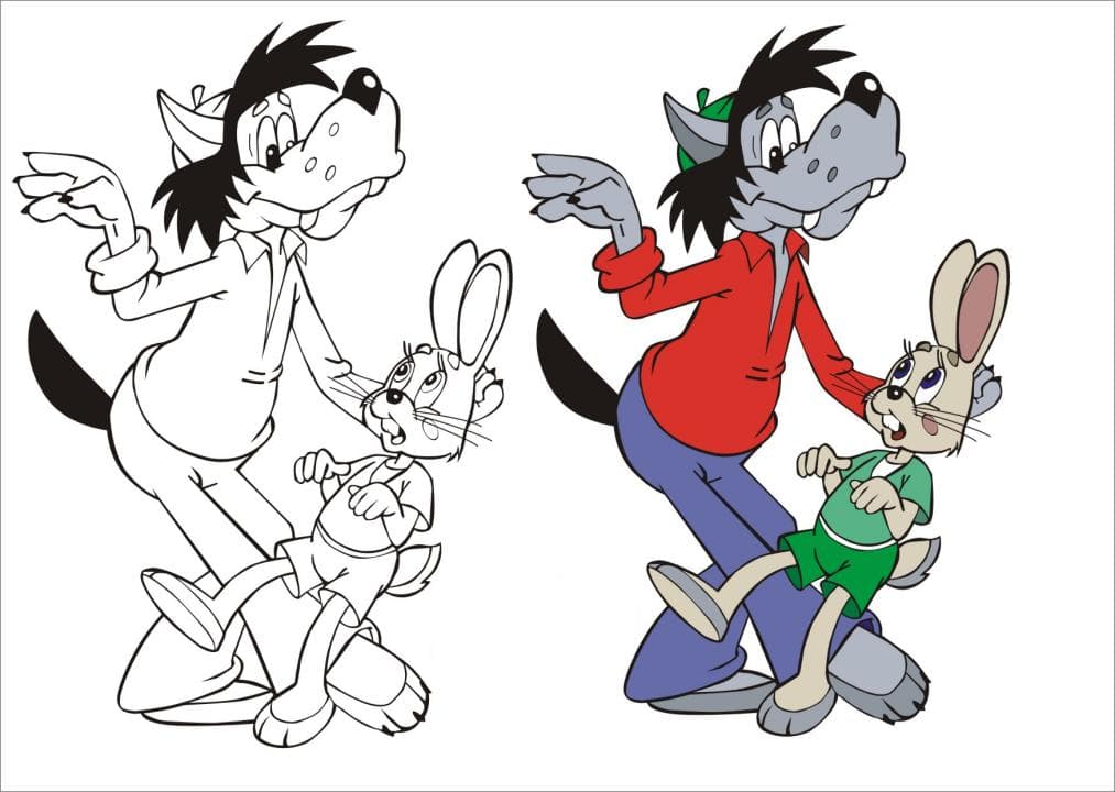 В самом начале волк бросает на траву окурок, который при смене кадра исчезает.