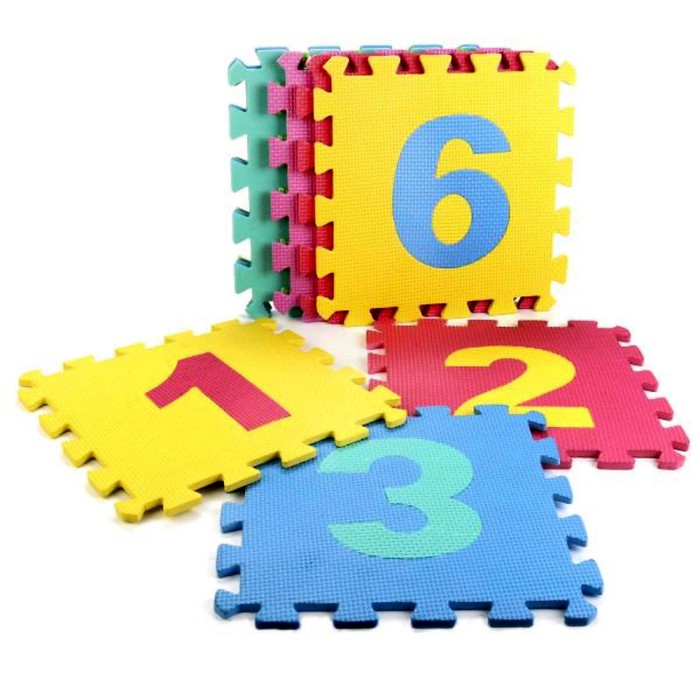 Данный коврик состоит из отдельных деталей, которые ребенку нужно будет учиться складывать, чтобы получился целостный коврик, а также с помощью него можно учить детей цифрам, буквам и различать цвета;