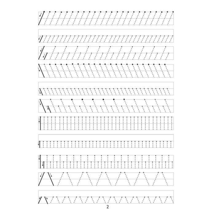 Наша вторая страница этих рабочих листов скорописи содержит 6 пунктирных линий для практического письма.