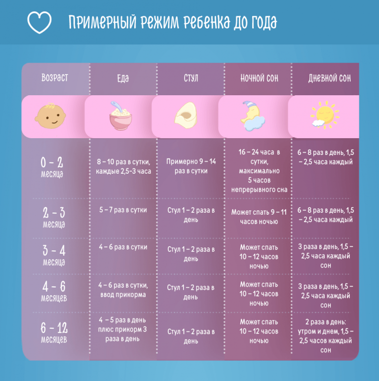 Кроме того, и у мамы при этом есть возможность отдыхать и уделять внимание другим членам семьи. Конечно, каждый малыш уникален, со своими пищевыми предпочтениями, индивидуальными особенностями времени сна и бодрствования. Поэтому, основываясь на общих правилах и рекомендациях, задача родителей — создать свой собственный режим дня, комфортный для ребенка и всей семьи. Положительное влияние ритма жизни приведет не только к укреплению здоровья малыша, но и к воспитанию в нём силы духа и дисциплинированности. Давайте рассмотрим, какие основные блоки деятельности должны присутствовать в ежедневной жизни малыша, и как правильно организовать режим дня в год.