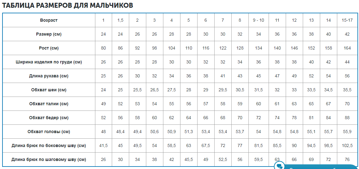 таблицы одежду какого размера покупать