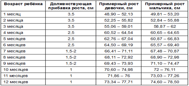 В первый год нормальный рост малыша увеличивается, как правило, на 20-27 сантиметров. В первые полгода кроха вырастает на свои 15 сантиметров, а остальные показатели нагоняет в последующем полугодии.