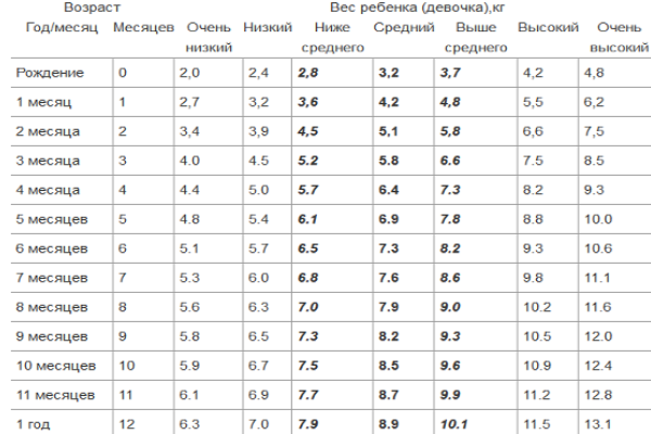 Вес ребенка в 8 месяцев