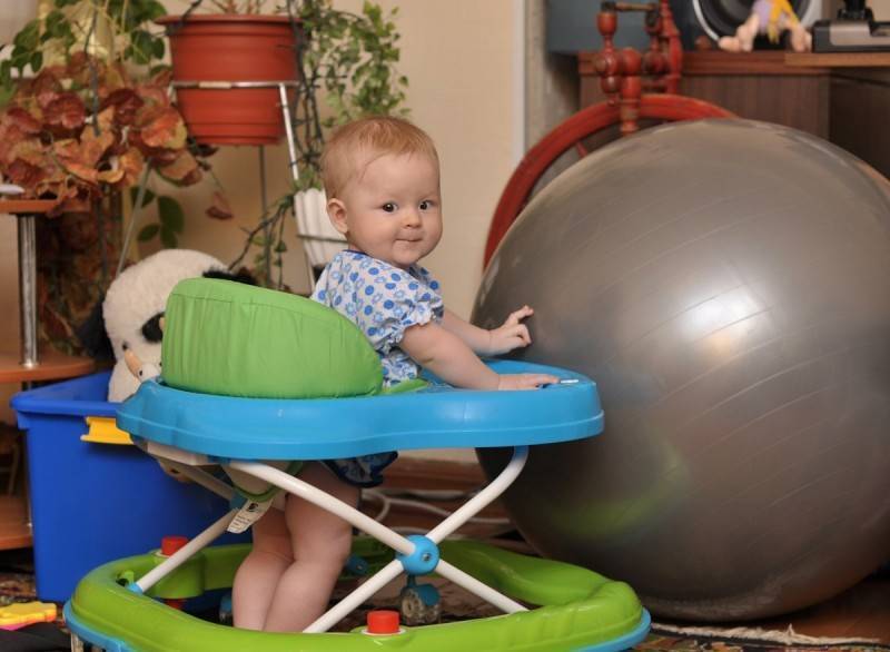 - Если слегка толкнуть в бок, малыш не упадет и не прогнется.