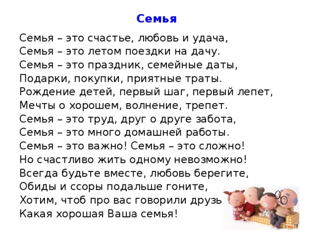 Стихи моя семья для детского сада: Стихи о семье для детей 3-6 лет в детский сад и на конкурс чтецов в школе