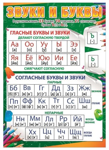 Таблица со звуками по русскому языку: Звуки и буквы – таблица произношения и правописания (2 класс, русский язык)