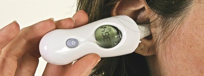 Использовать другие варианты термометров для измерения температуры в ухе недопустимо, так как они для этого не предназначены. Инфракрасные зонды снабжены специальными защитными насадками и ограничителями, посредством которых исключается вероятность повреждения ушного канала. По истечению 3-5 секунд можно извлекать прибор и считывать значение. Нормальная температура в ухе составляет 37,4-37,8 градусов. У детей в возрасте старше одного года ее значение составляет 37,2-37,4 градуса.