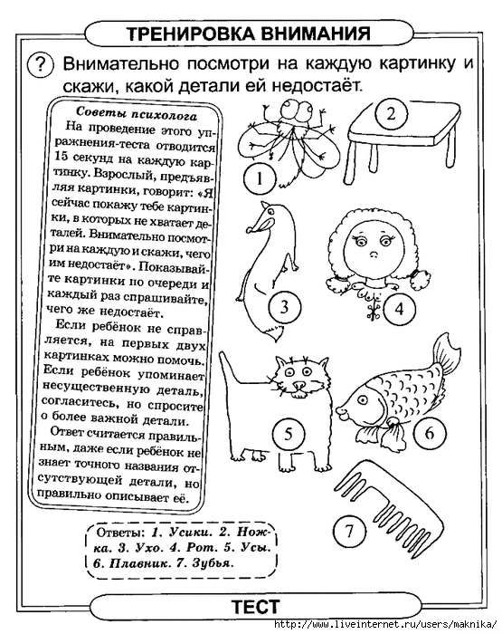 1. Предложенные задания должны выполняться ребёнком в непринужденной обстановке. Тест может быть представлен как игра, или как какая-то повседневная деятельность.