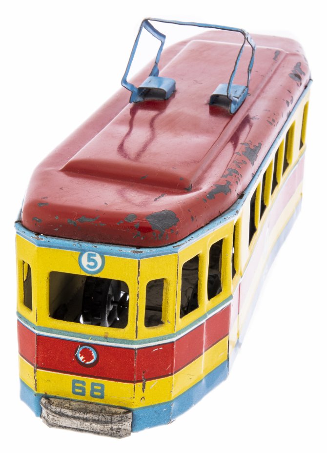 винтажная оловянная трамвайная машина – трамвайная игрушка сток-фото и изображенияСтаринная жестяная трамвайная тележка