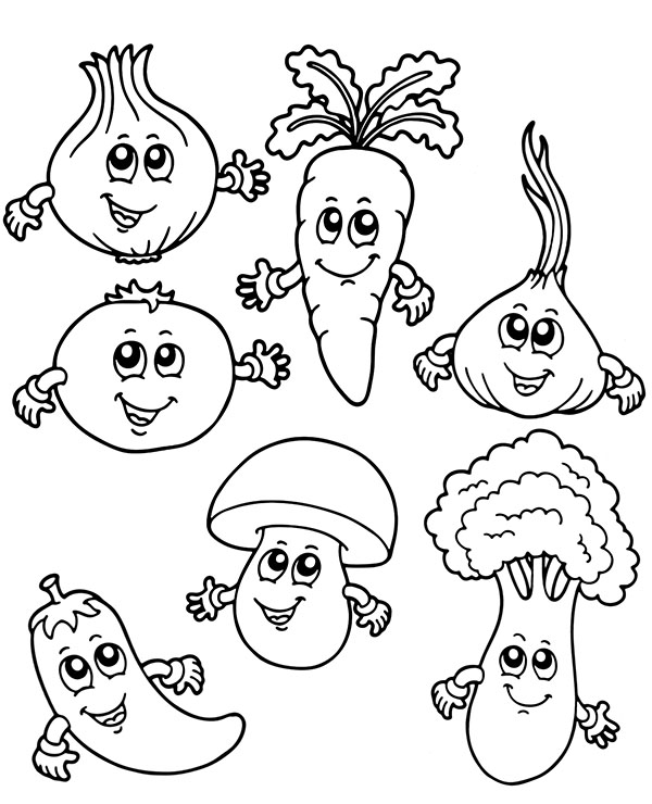 Веселые овощи раскраски: Веселые овощи раскраска для детей